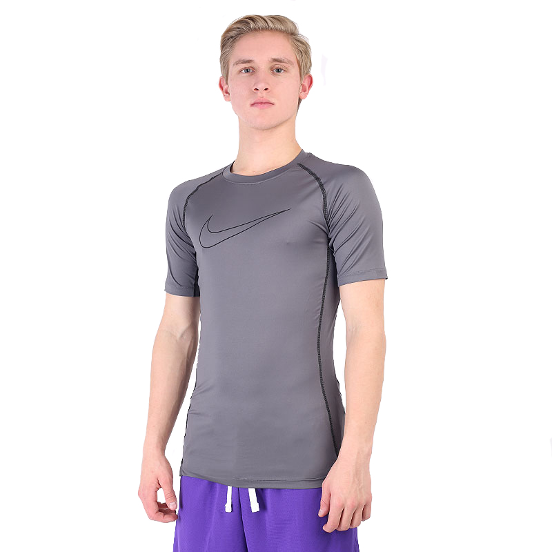 Серая мужская футболка линейки PRO от бренда Nike. Модель облегающего кроя выполнена из сочетания полиэстера и эластана с влагоотводящими свойствами материала Dri-Fit. Отличный вариант для тренировок с перфорацией на спине и по бокам. Благодаря небольшим разрезам по бокам у подола и плоским внутренним швам футболка не натирает и не сковывает движений. Сетка на сильно нагретых участках спины, по бокам и подмышками пропускает воздух, чтобы вы не теряли прохладу при высокой температуре. Технология Nike Dri FIT отводит пот от вашей кожи для более быстрого испарения, помогая вам оставаться сухими и комфортными. Легкая эластичная ткань с прорезями на подоле помогает естественным движениям во время тренировок высокой интенсивности. Характеристики: