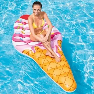 Необычный плот Intex в виде рожка мороженого подойдет для всех любителей купаться и просто отдыхать на пляже. Яркий и креативный дизайн выделит вас среди остальных окружающих и подарит положительных эмоций на весь день. Плот можно использовать для создания запоминающихся домашних фотографий или профессиональной фотосессии. Плот выполнен из прочного винилового материала с толщиной 0,3 мм. Благодаря своим размерам, модель подойдет, как для детей, так и взрослых, выдерживая максимальный вес до 100 кг. Оригинальный внешний вид, прочные материалы и небольшая цена выделяют такую модель среди своих аналогов. Особенности и преимущества: